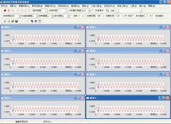 1、采集模塊:采集方式分為手動(dòng)采集、電壓信號(hào)觸發(fā)采集(含多次觸發(fā)采集功能)、定時(shí)采集三種功能。具有連續(xù)快速采集存盤(pán)功能,做到邊采邊存入硬盤(pán)的不丟點(diǎn)的海量存貯功能,采集時(shí)具有五種顯示模式,一是可同時(shí)多窗體顯示電壓信號(hào)的實(shí)域波形;二是可同時(shí)多窗體顯示電壓信號(hào)修正為實(shí)際物理量值后的實(shí)域波形,應(yīng)變測(cè)量時(shí)可實(shí)時(shí)顯示分析后的應(yīng)力值及主應(yīng)力方向;三是可實(shí)時(shí)顯示頻域波形顯示;四是在每一通道窗體內(nèi)上部顯示實(shí)域、下部顯示頻域波形,界面可顯示多達(dá)16個(gè)通道的波形;五是在同一窗口顯示多達(dá)16通道的波形。