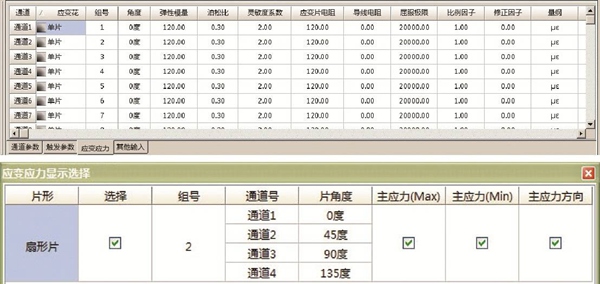 5、應(yīng)變應(yīng)力分析模塊:?jiǎn)蜗驊?yīng)變應(yīng)力計(jì)算,應(yīng)變花主應(yīng)力及方向計(jì)算(丁片、直角三角片、等腰三角片、傘形片、扇形片),長(zhǎng)導(dǎo)線修正,K值修正、標(biāo)定;靜態(tài)應(yīng)變采集分析。